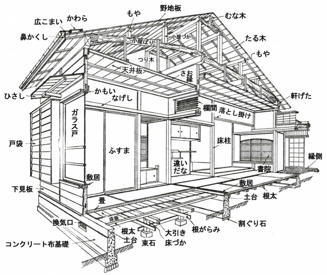 この軸組構造には、壁を柱の間に捉え、柱をあらわしにする真壁造(和風)と、柱を壁の中に包み込んでしまう大壁造(洋風)とがあります。