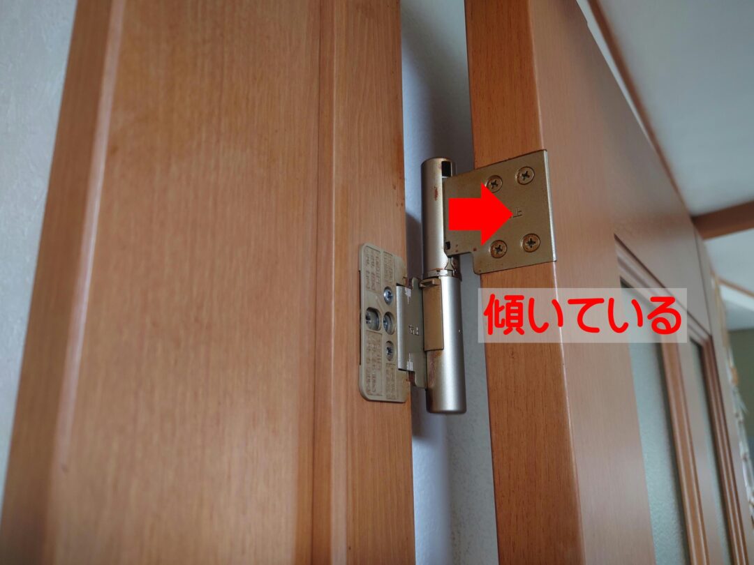 この重量が長年ヒンジに負担をかけ続けたことで、丁番が曲がり、摩耗を早めた原因になったのではないかと考えられます。
