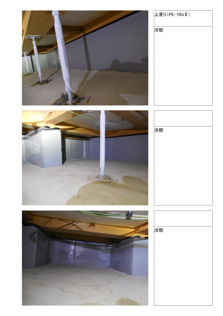 報告書の主な内容は、基礎図面(平面図)と被害箇所の写真帳となります。この報告書をもとに、補修工事などの御見積書を作成し、お渡しさせていただきます。